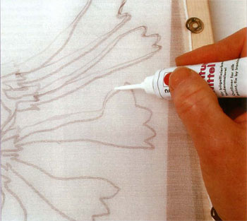 Создание контурной линии – один из основных этапов росписи по шелку. Резервирующий состав создает преграду, не дающую краске растекаться. Для того чтобы получить аккуратную контурную линию, следует обладать определенным навыком, поэтому тренируйтесь и совершенствуйтесь. В данном разделе предлагается несколько способов нанесения резервирующих смесей. Подробнее об особенностях резервирующий и контурных составов читайте в статье “Составы для контуров и резервирующие смеси“.