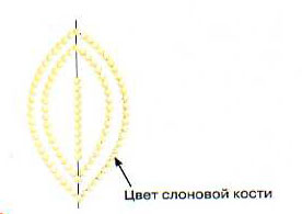 1. Чтобы изготовить такой гладиолус, нам понадобится: два “пестика” (состоящих из одного «столбика», собранного из 20 бисерин, и одного ряда коричневого бисера); 9 лепестков (состоящих из «столбика», собранного из 20 бисерин, и двух бисерных рядов цвета слоновой кости); 5 лепестков (состоящих из «столбика», собранного из 20 бисерин и 2-х бисерных рядов цвета слоновой кости)и 5 листиков (состоящих из «столбика» из 15 бисерин и зеленого бисерного ряда).