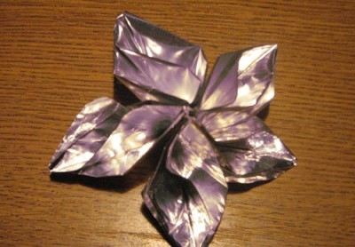 Наращивать фигуру далее по тому же принципу. Поскольку недостроенная кусудама имеет тенденцию разваливаться, все соединения полезно дублировать скрепками или маленькими зажимами. Когда Вы поймете принцип соединения – можно сразу сажать модули на клей”.