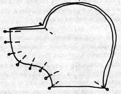 Примечание: Скрепите детали булавками таким образом, чтобы головки булавок были направлены наружу, а концы указывали в средину детали. Это сохранит ровное положение детали и облегчит работу (рисунок 8).