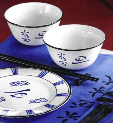 Модный японский стиль нашел свое отражение и при декорировании посуды. Как сделать декор? Возьмем пиалку и тарелку и украсим их.