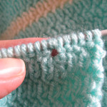- И со следующего ряда начинаем вывязывать несложный узор: с шестого по девятый ряды – чередуем лицевые с изнаночными петлями в каждом ряду.
