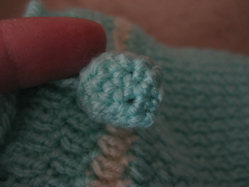 - Готовый шнурок протягиваем в дырочки, одеваем заготовку, завязываем снизу на узелок и начинаем обвязывать.