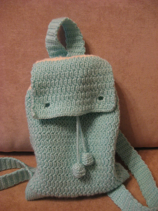 - Чтобы рюкзак как-то украсить, можно ввести нить другого цвета или просто вывязать или вышить на нем какого-нибудь героя из любимого мультфильма вашего малыша, цветочки, машинки и т.д.